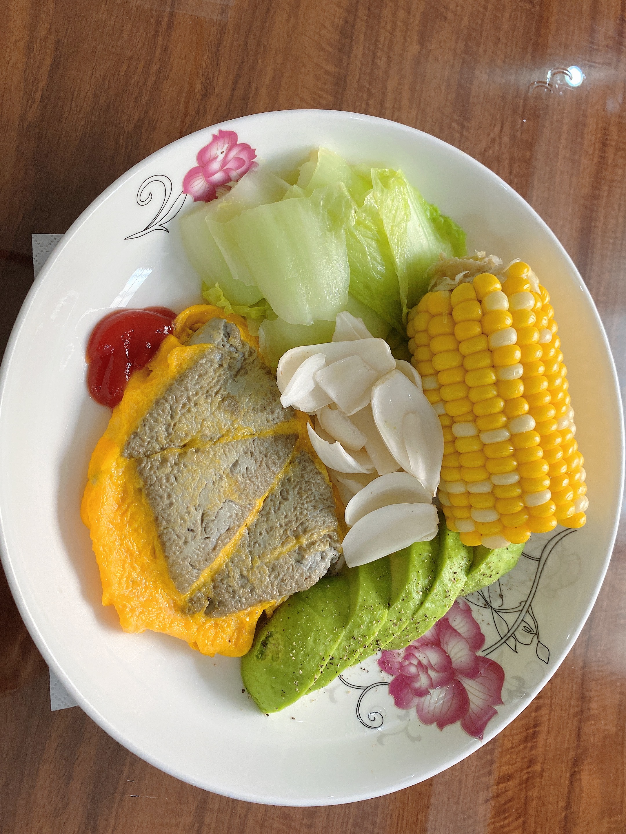 早餐~份量多了吃不完啊😂😂 水煮青菜🥬