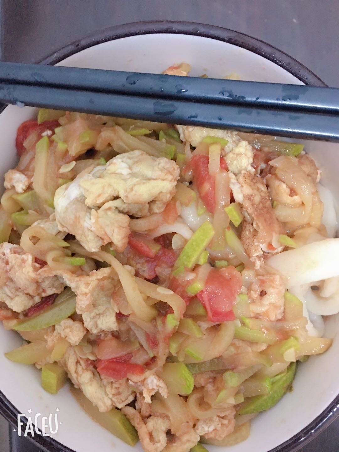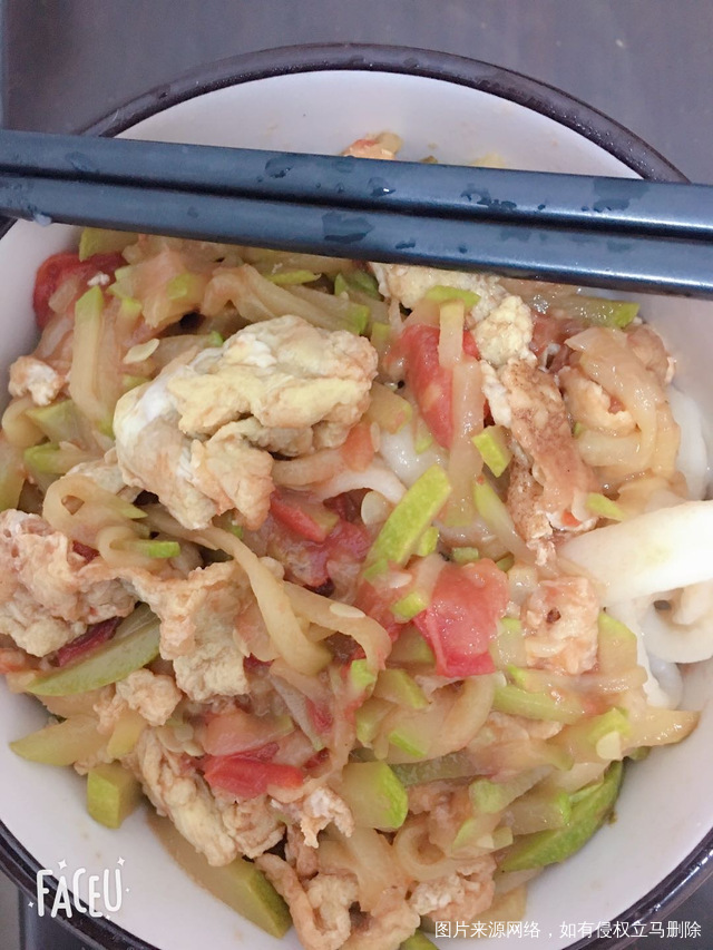 晚餐继续打卡,西葫芦鸡蛋西红柿面条,饭后一个苹果,生理期粗盐包敷起来