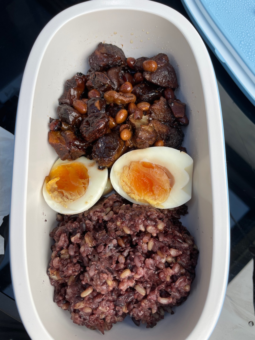 午餐:粗粮饭+猪脚焖黄豆+一只鸡蛋