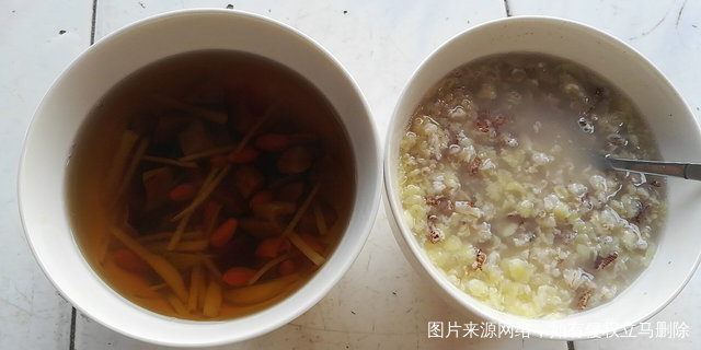 一碗麦片粥,一碗生姜红疹枸杞水。