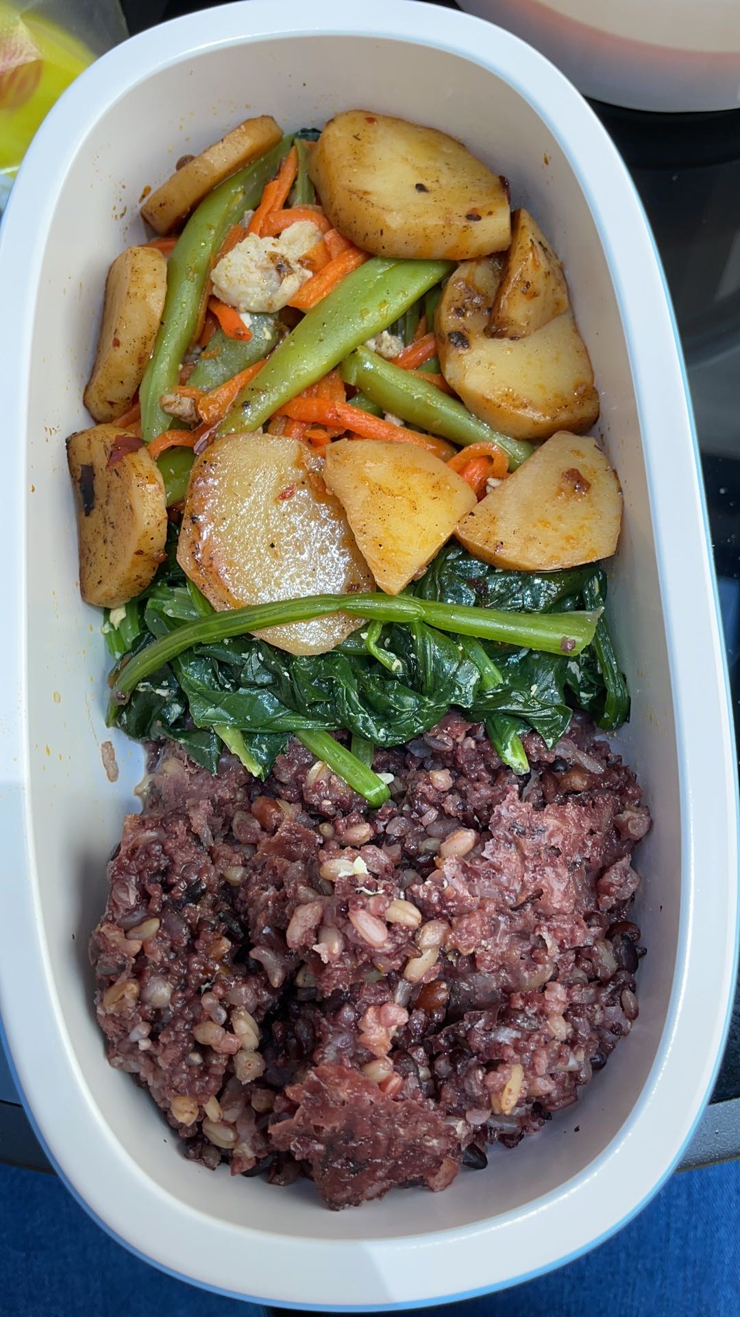 午餐:一碗粗粮饭+波菜+炒四季豆+土豆