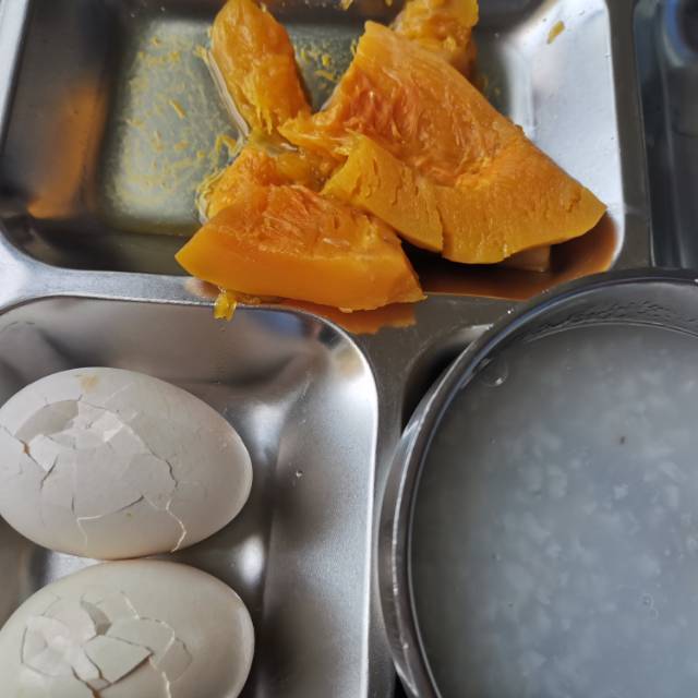 早餐吃了南瓜鸡蛋稀饭跑步30分钟打羽毛球20