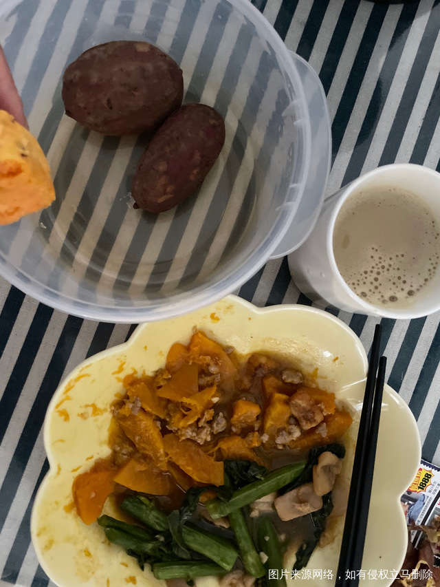 #第20天# 午餐:三只红薯+豆浆+南瓜+青菜
