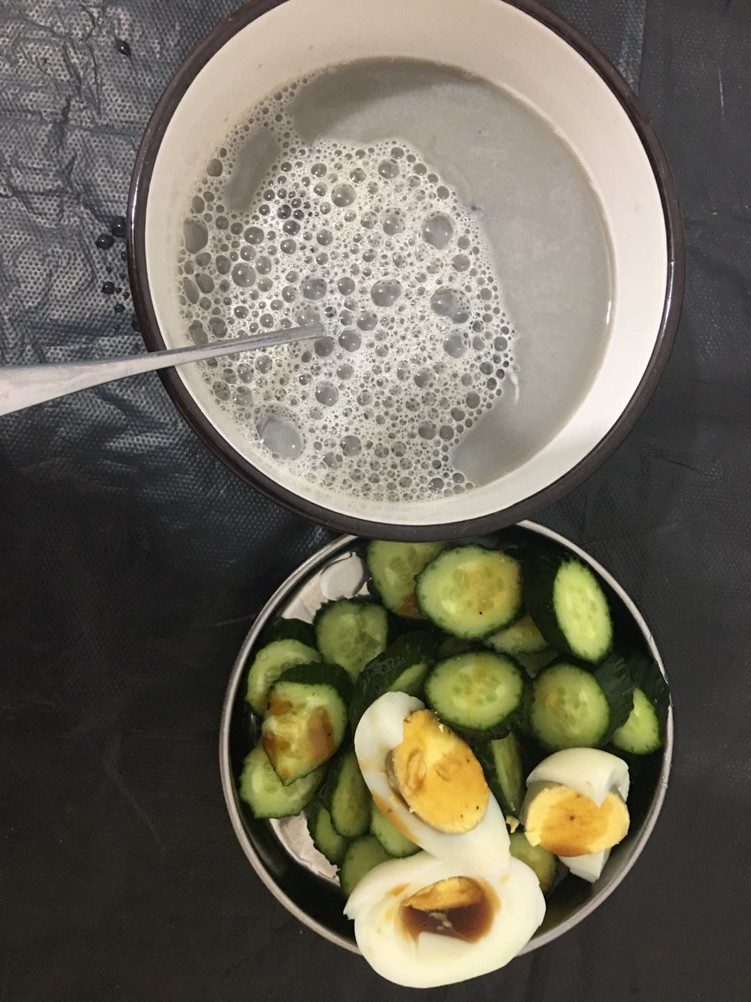 晚餐继续打卡,黄瓜🥒🥒水煮蛋🥚🥚一碗无糖黑豆浆