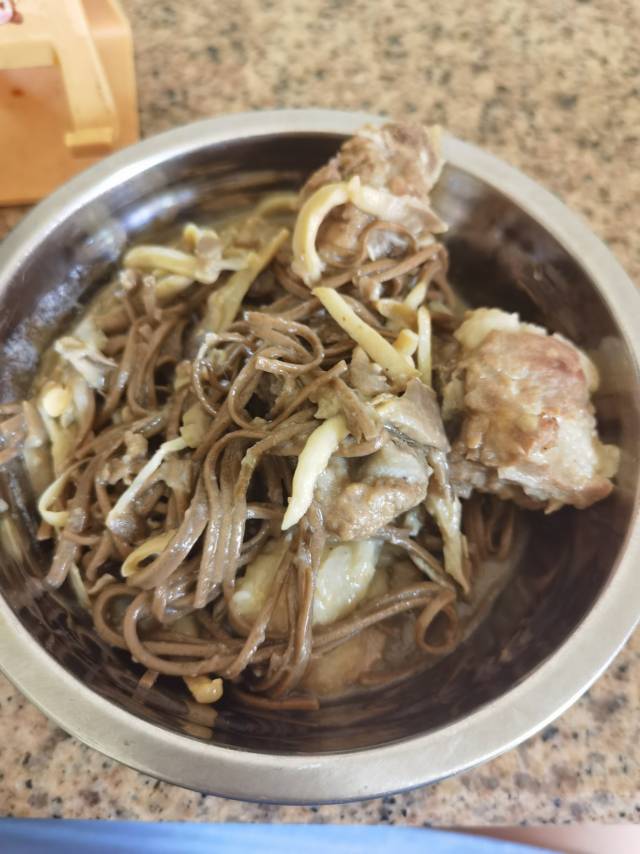 #第6天# 午餐:排骨 不知道什么菇焖荞麦面