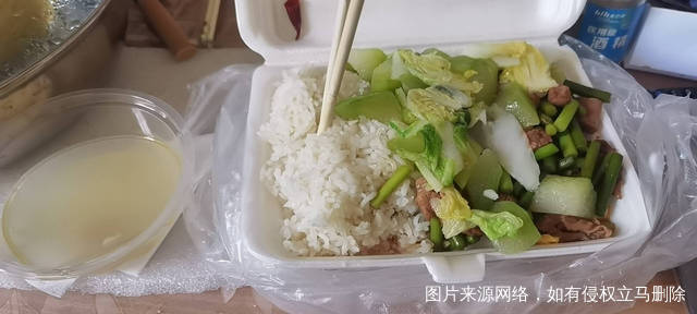 #第2天# 午饭,蒜薹炒肉,白菜,汤一碗
