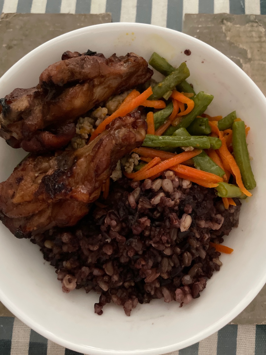 #第3天# 午餐:粗粮饭+两个鸡翅根+炒豆角