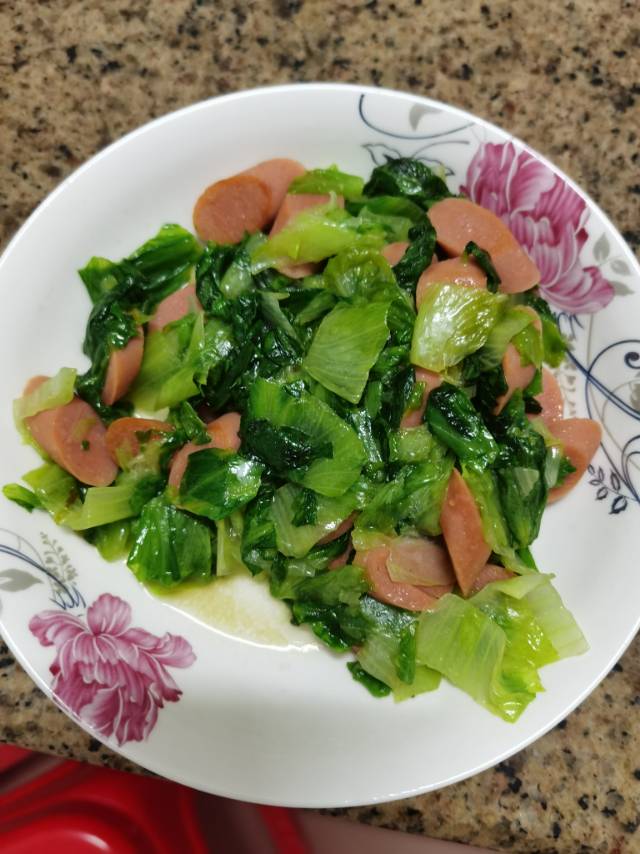 晚餐:生菜炒火腿肠😂