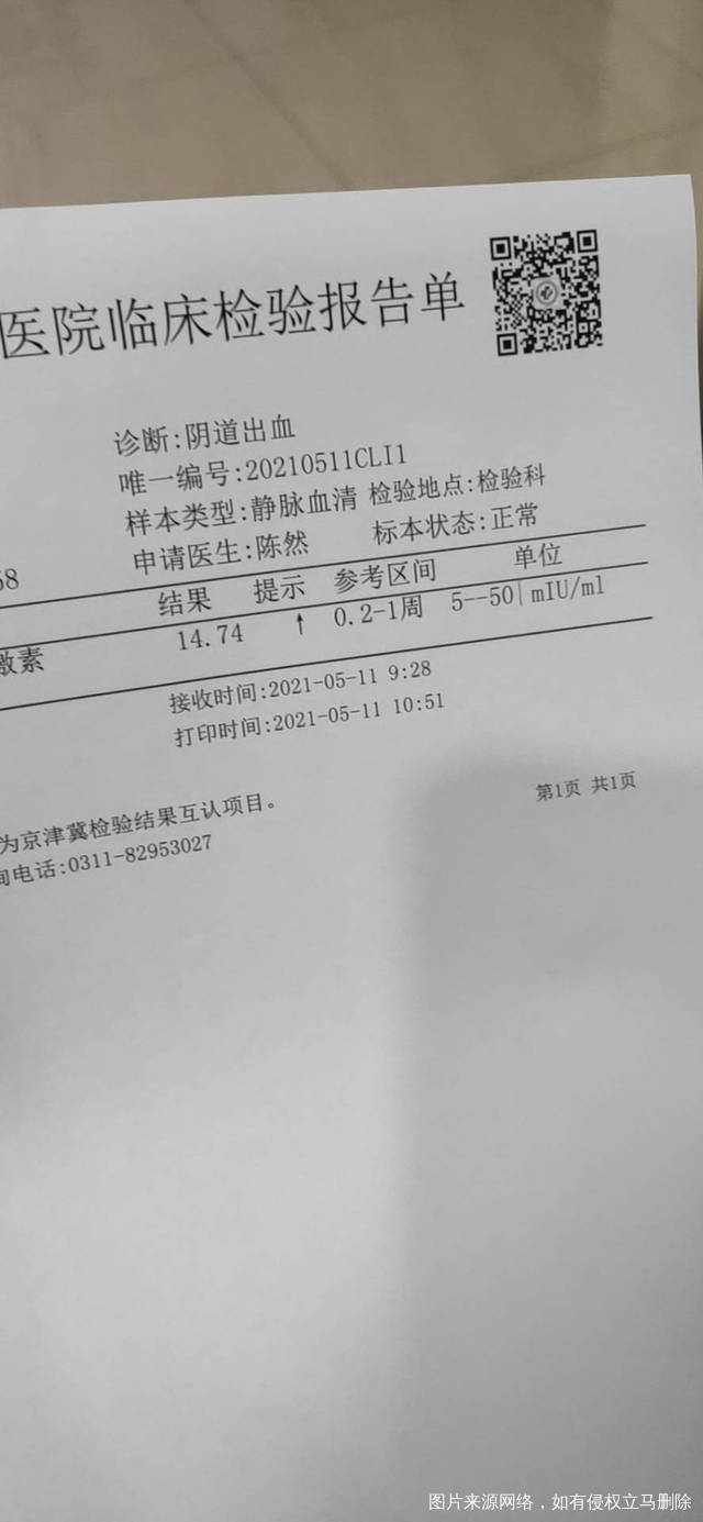 月经推迟五天出血几滴查血hcj结果阳性两天后