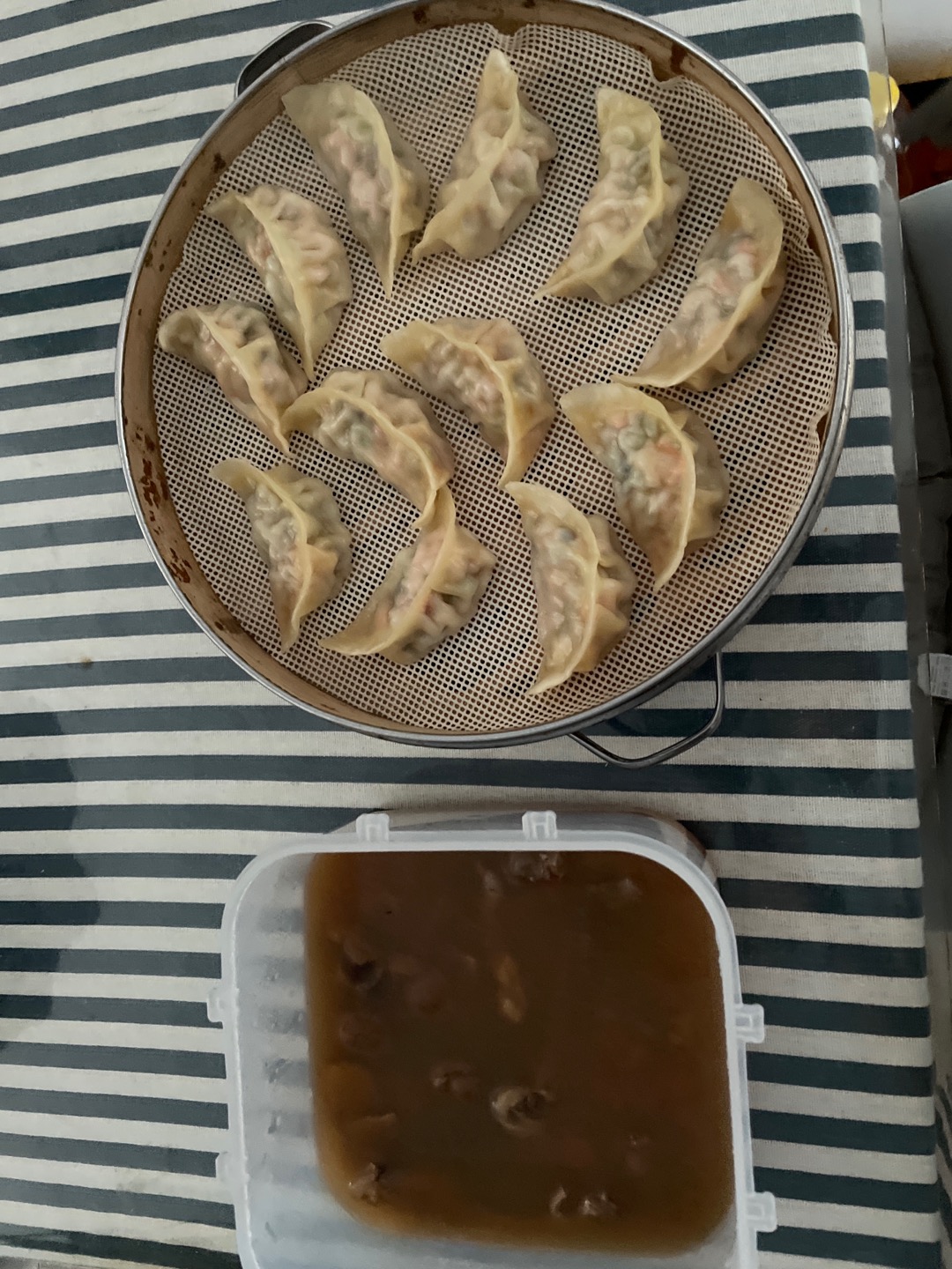 午餐:12只蒸饺+鸡爪板栗汤