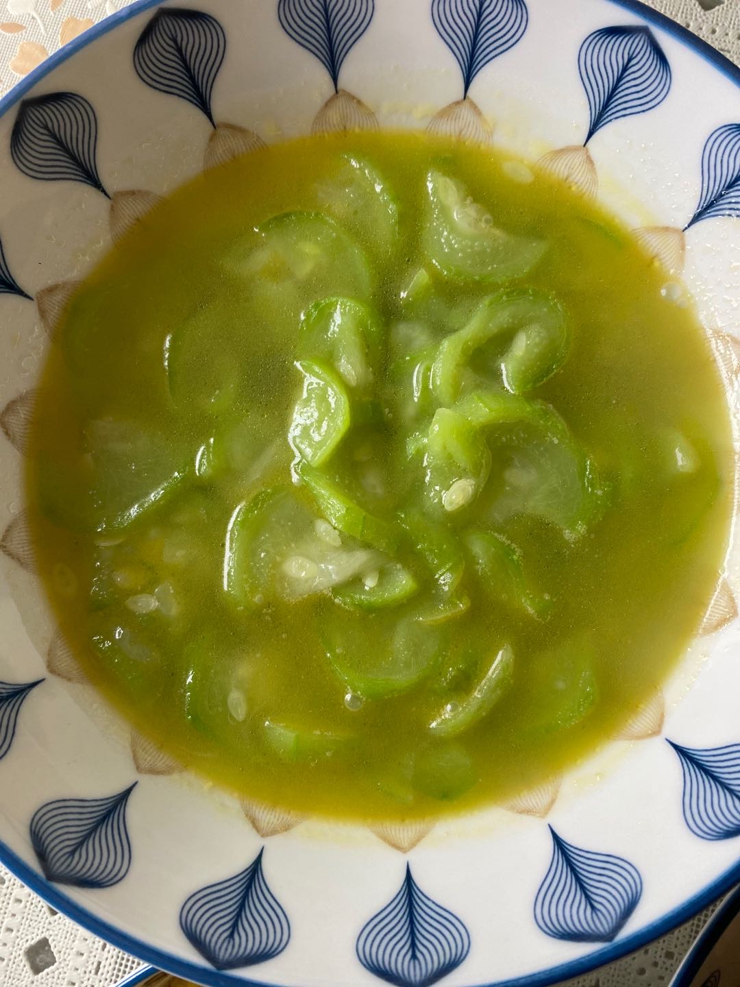 丝瓜汤甜甜的 好喝,再加上无糖黑豆豆浆
