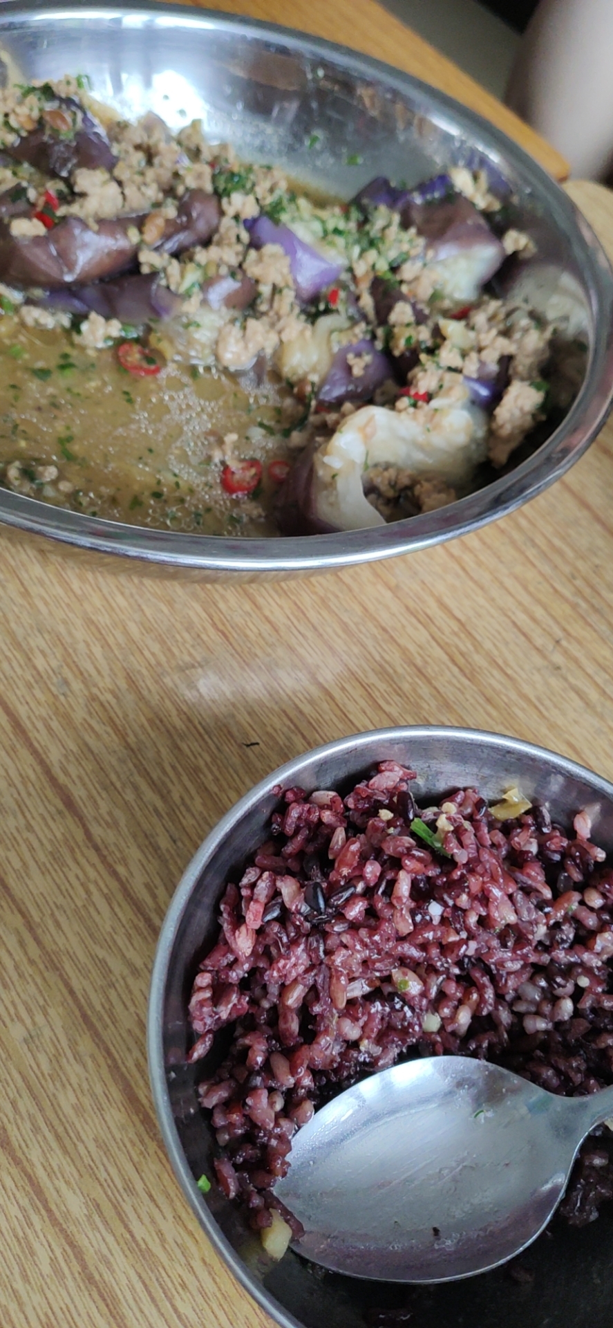 肉沫蒸茄子+三色糙米饭