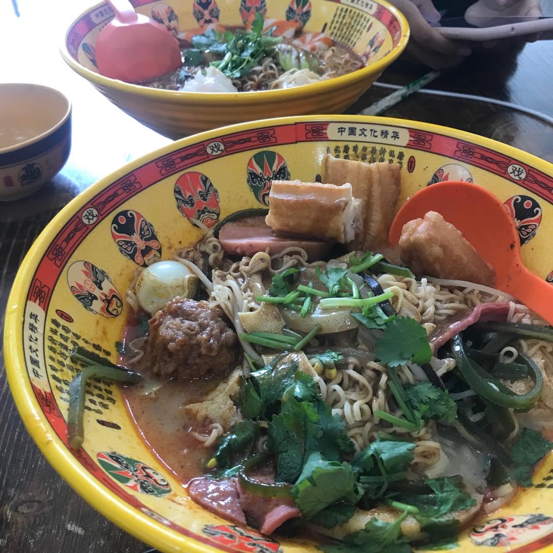 早餐小米粥 午餐在外面吃的麻辣烫 。晚上半个