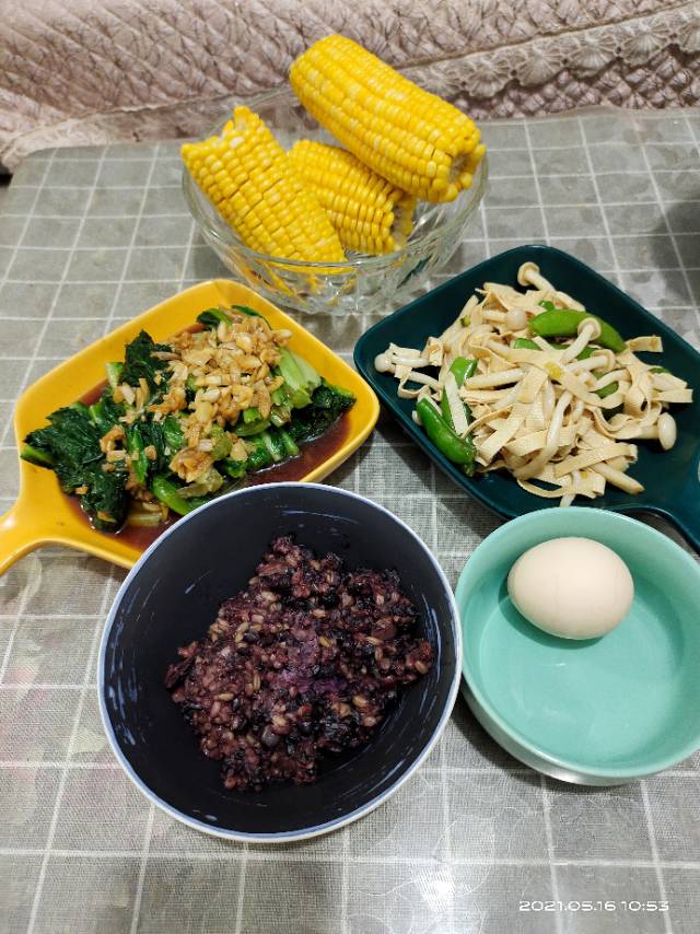 减肥打卡第五天早杂粮饭鸡蛋蚝油生菜凉拌海鲜菇