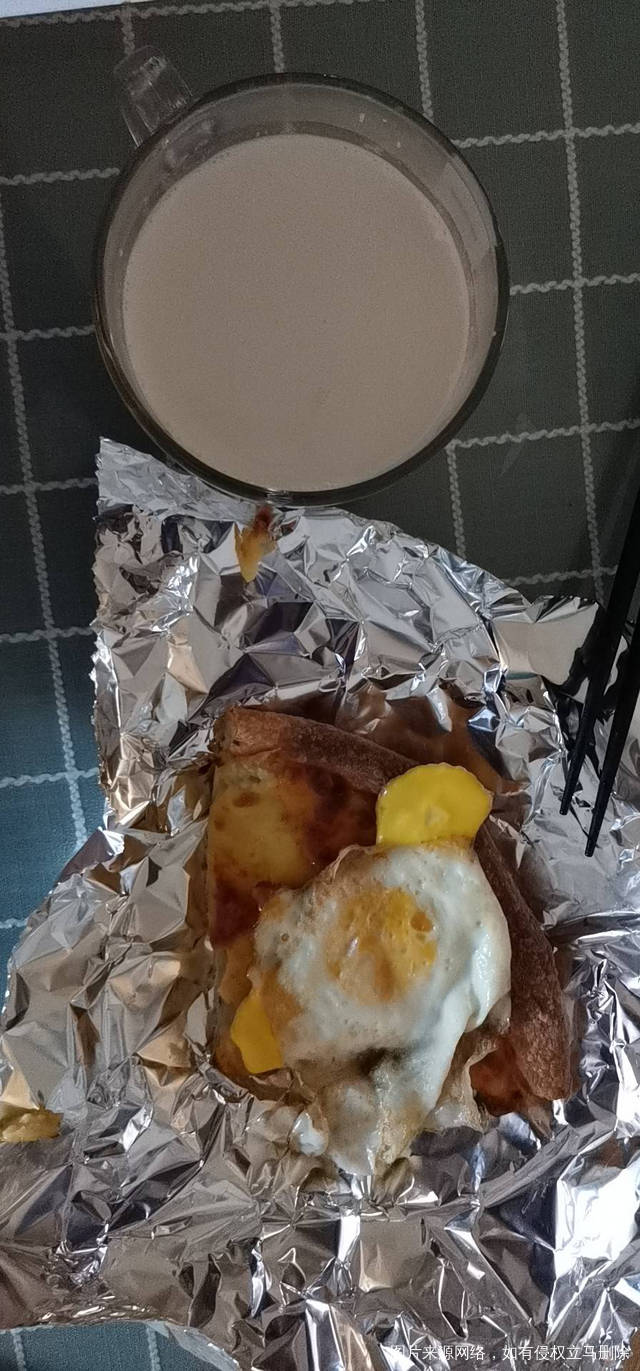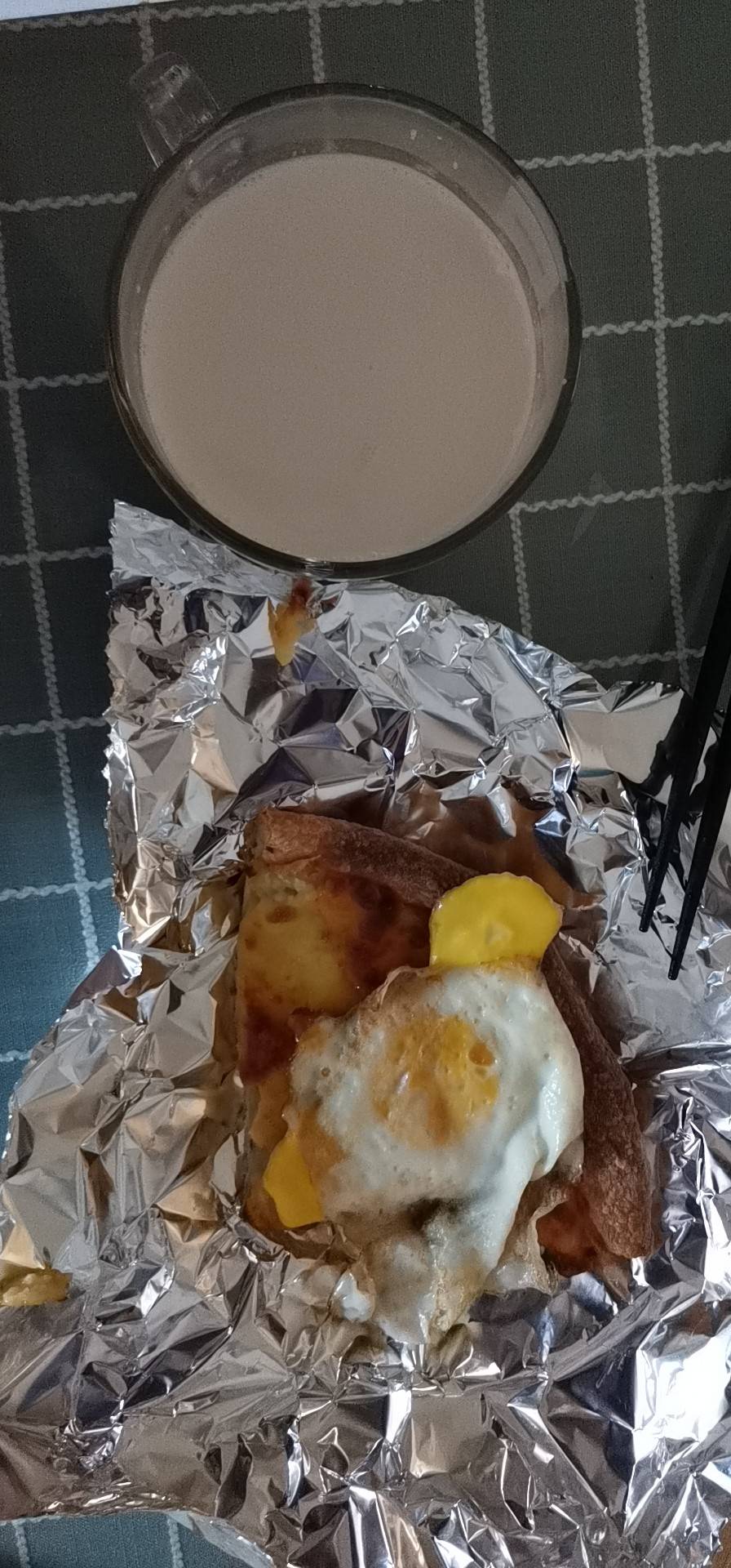 #第5天# 昨晚剩下的榴莲披萨,一个煎蛋,一杯热牛奶~营养丰富味道好