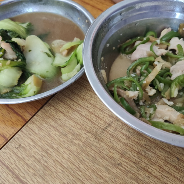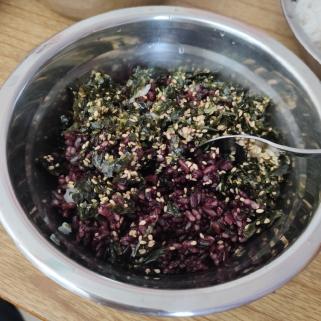 早餐一个玉米 午餐糙米海苔拌饭+青椒榨菜炒肉
