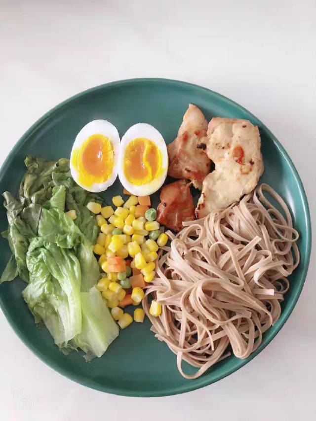 晚餐继续打卡,荞麦面条 水煮蛋 生菜 鸡