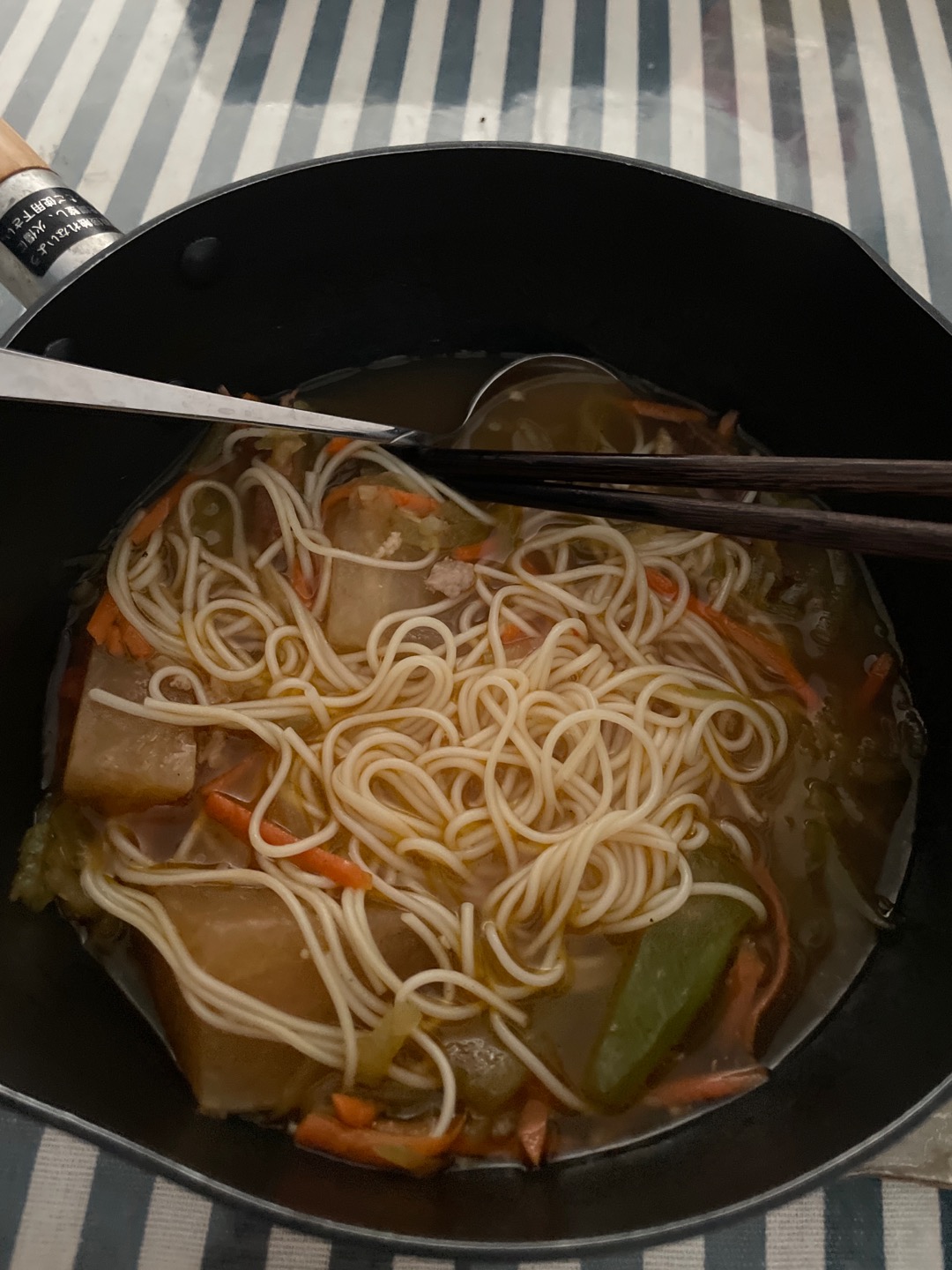 中午简单点吃面条算了,用的牛杂萝卜汤底