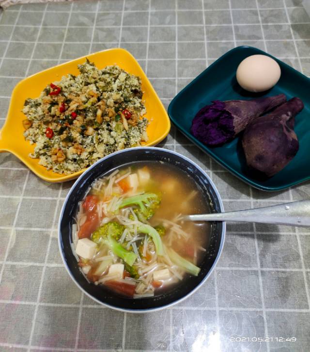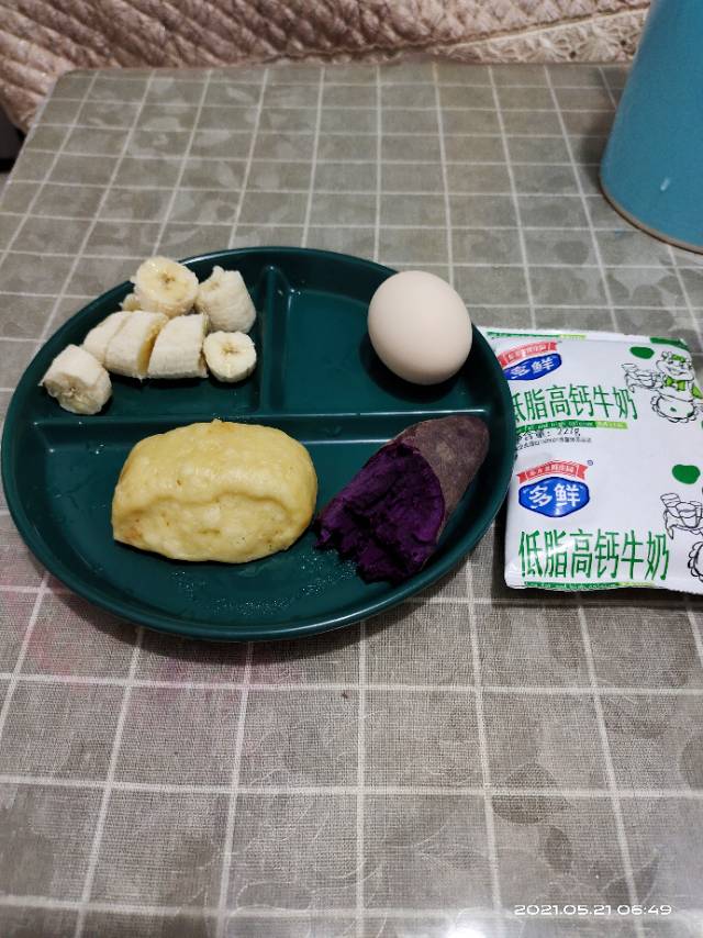打卡第十天 早,鸡蛋,杂粮馒头,半个紫薯,低
