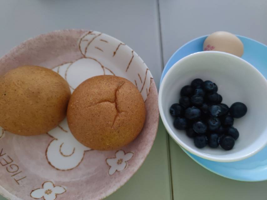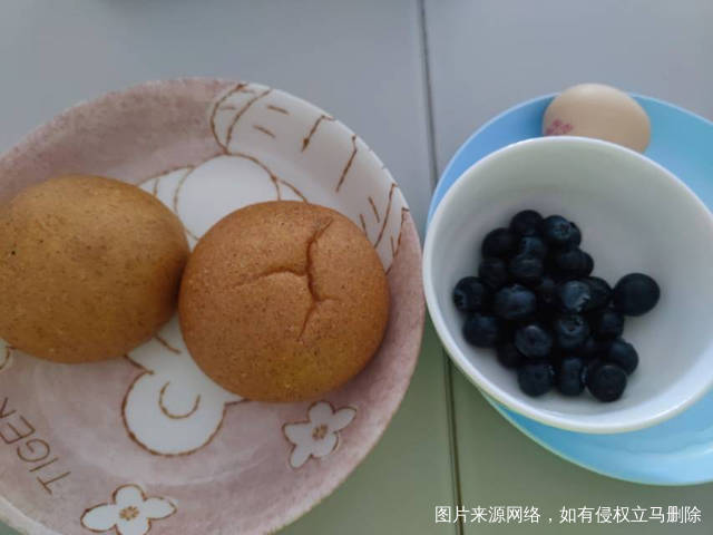 早餐:蓝莓+无糖杂粮餐包+鸡蛋~