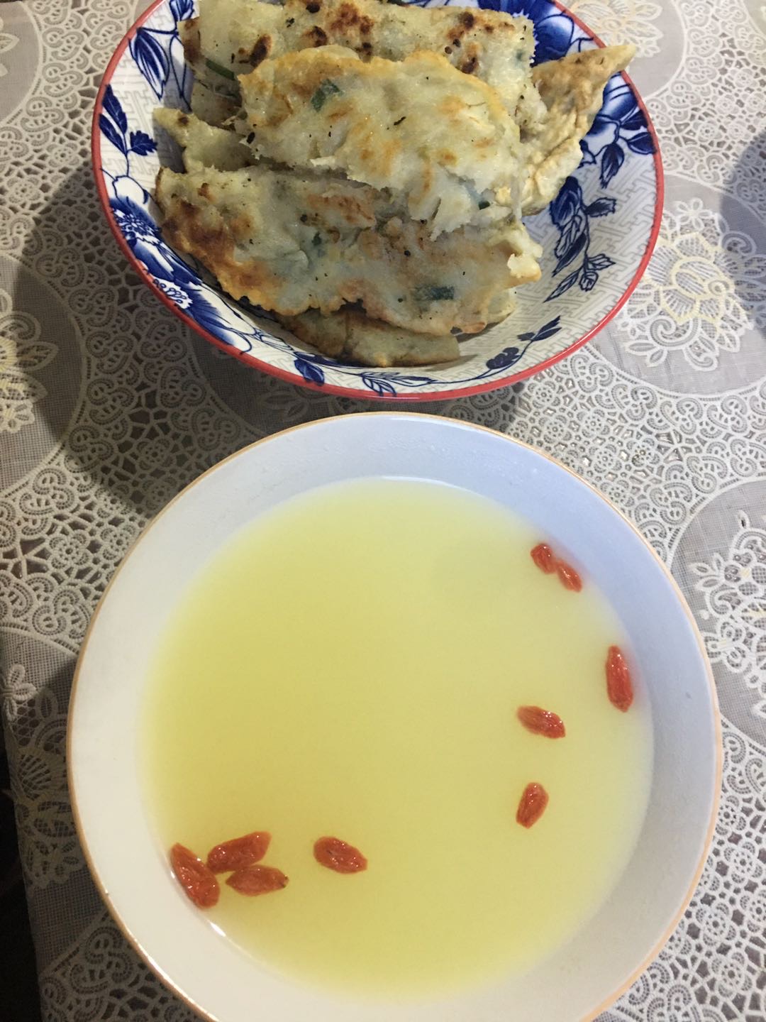 晚餐继续打卡.枸杞小米粥,槐花饼