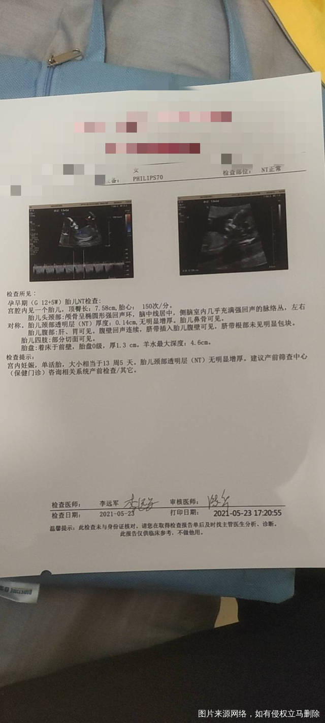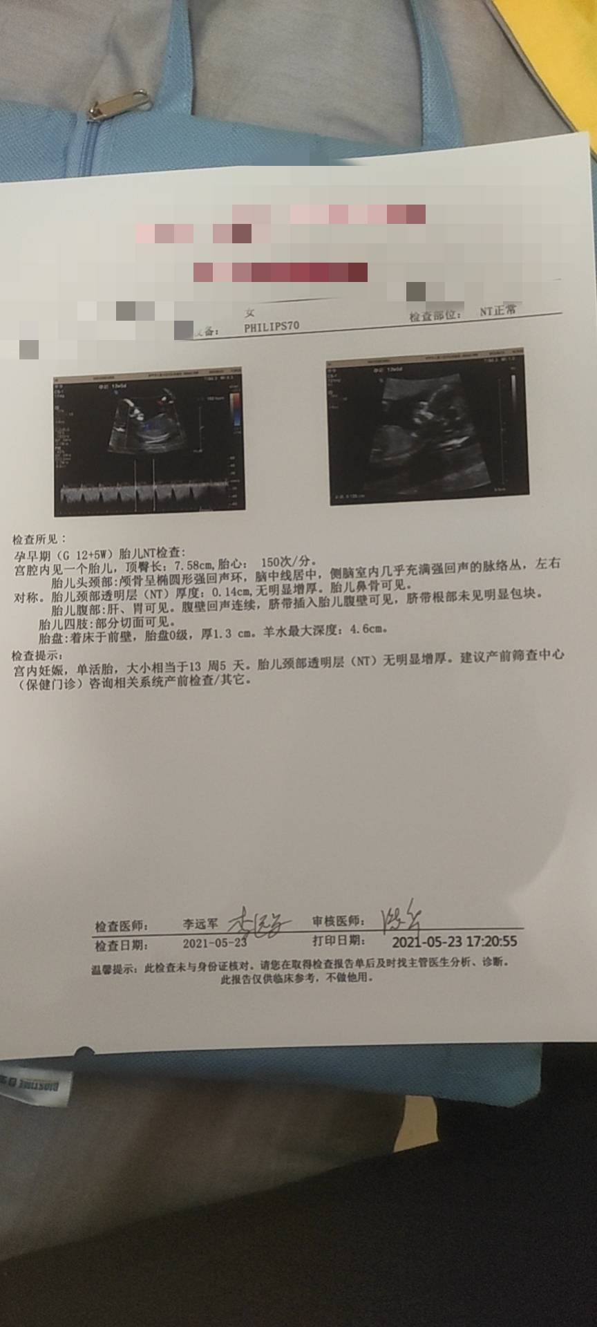 做了三次NT的结果,第一二次医生都说位置不好,看不到,叫出去走半小时再做,第三次终于过了,结果显示没什么问题,医生下班了,还没找医生看,麻烦帮忙看一下