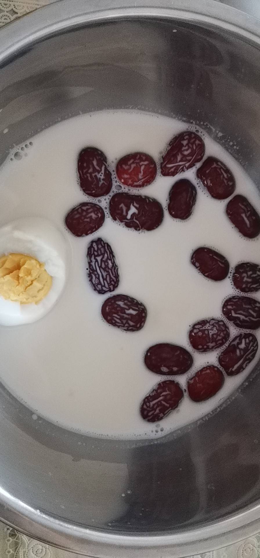 红枣,鸡蛋,牛奶,吃饱饱啦~~