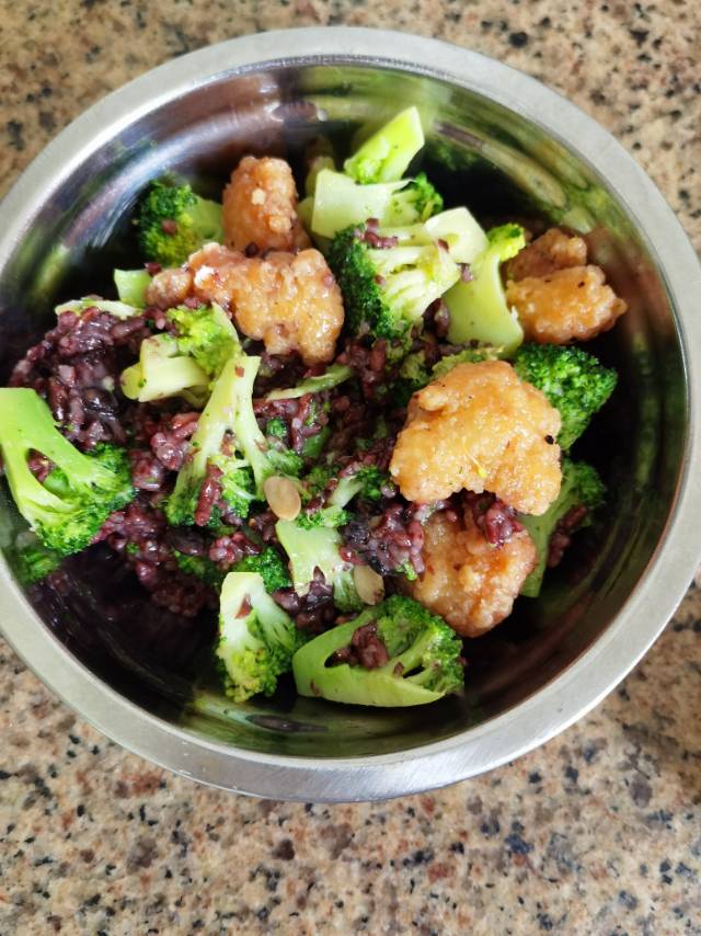 #第2天# 午餐:西蓝花+鸡米花+杂粮饭,一锅熟