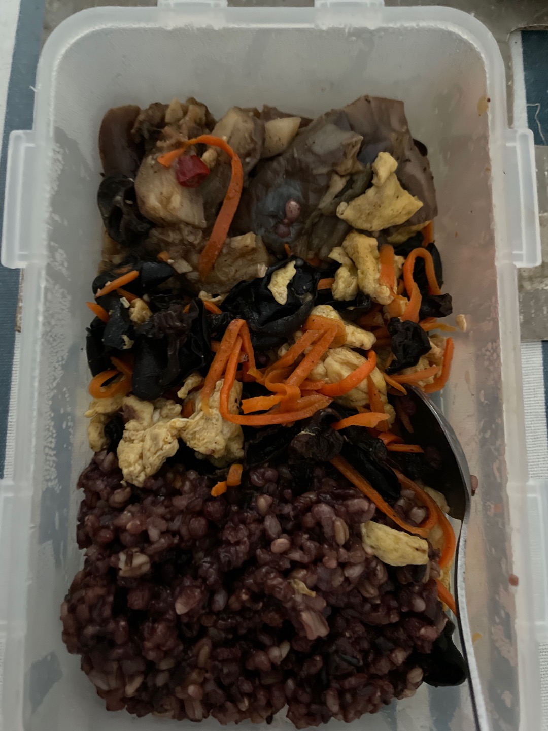 #第20天# 午餐:一碗粗粮饭+鸡蛋炒木耳+炒茄子