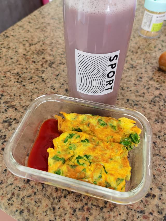 #第3天# 早餐:黑豆浆+自制鸡蛋卷饼【鸡蛋+青菜】