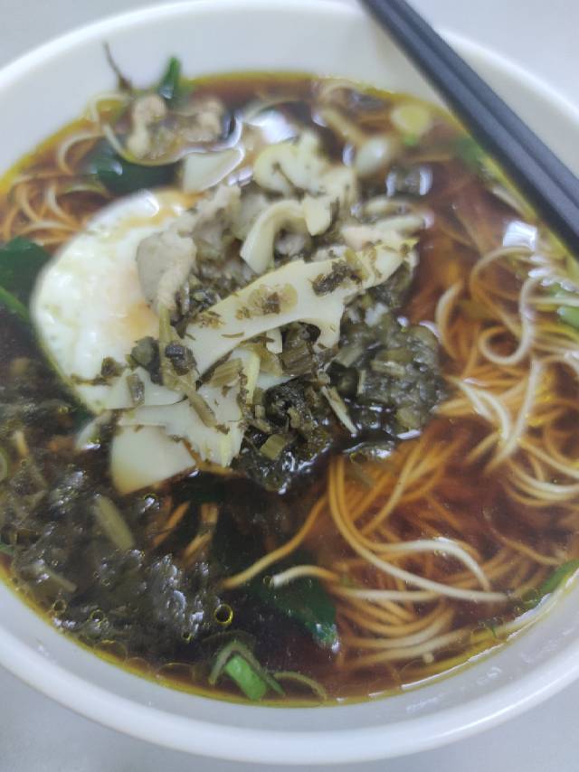 打卡今天的早餐,今天吃了一碗雪菜肉丝鸡蛋面