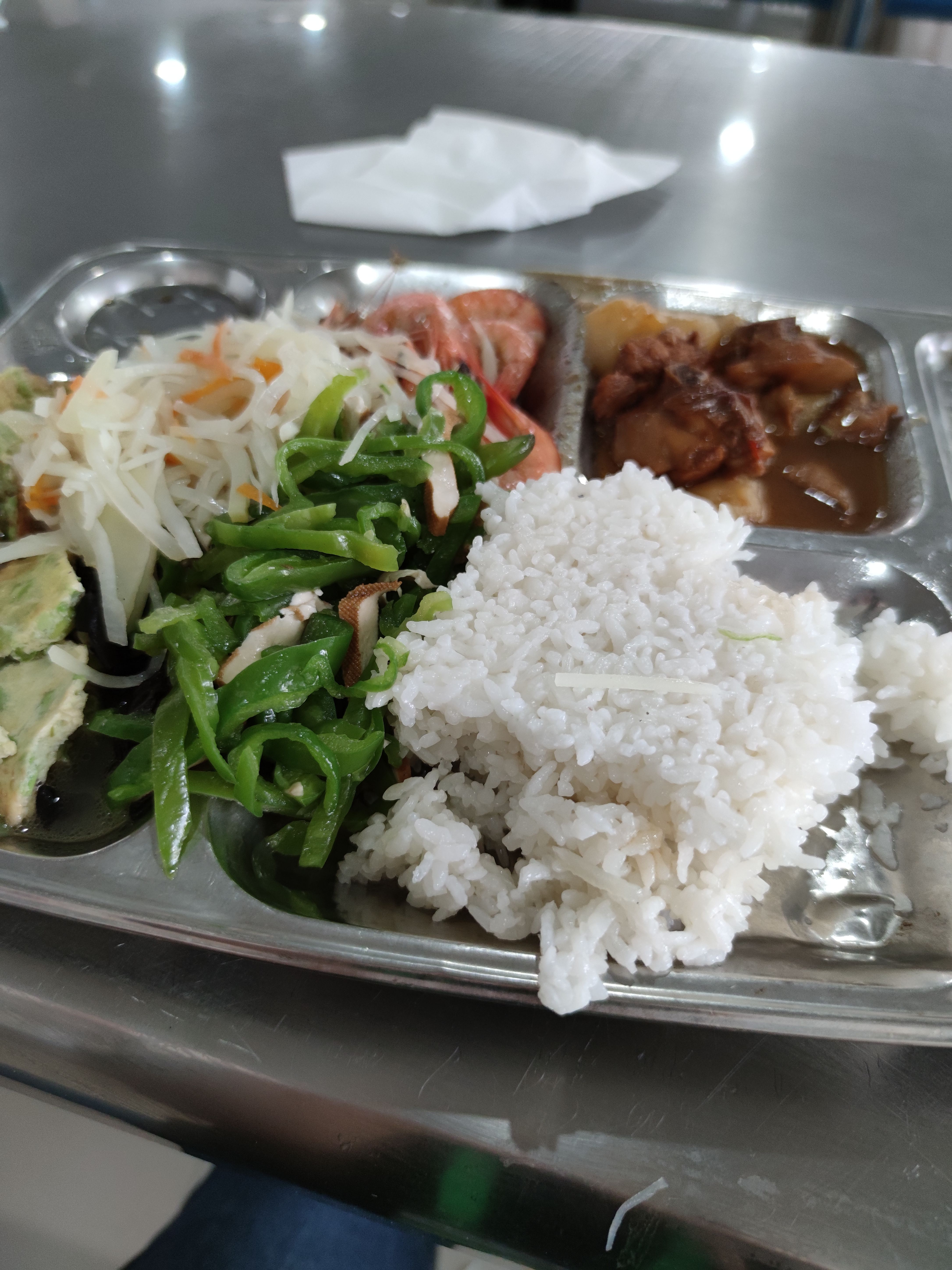 打卡午餐,饭给我打的太多了,两个荤菜,两个素