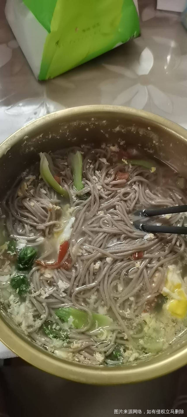 #第4天# 六一晚餐,荞麦面,鸡蛋,西红柿,青菜