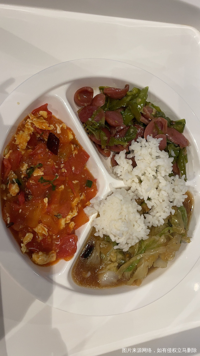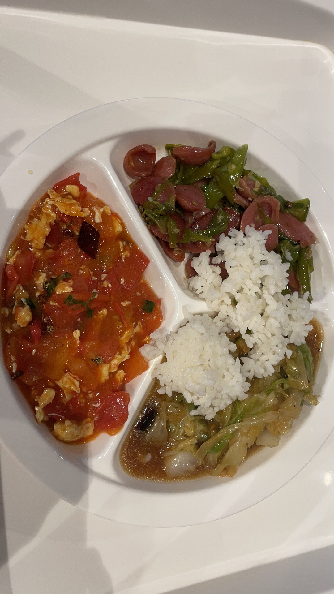 西红柿炒鸡蛋+炒白菜+几个小肠