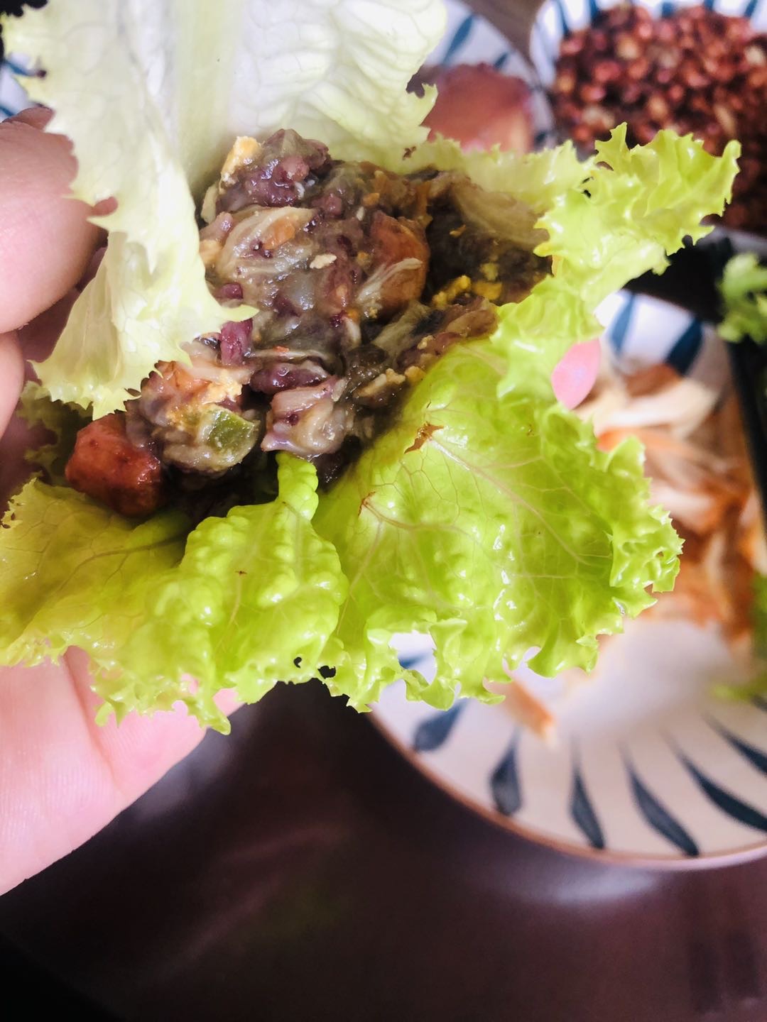 午餐大饭包、土豆泥茄子糙米饭特别香
