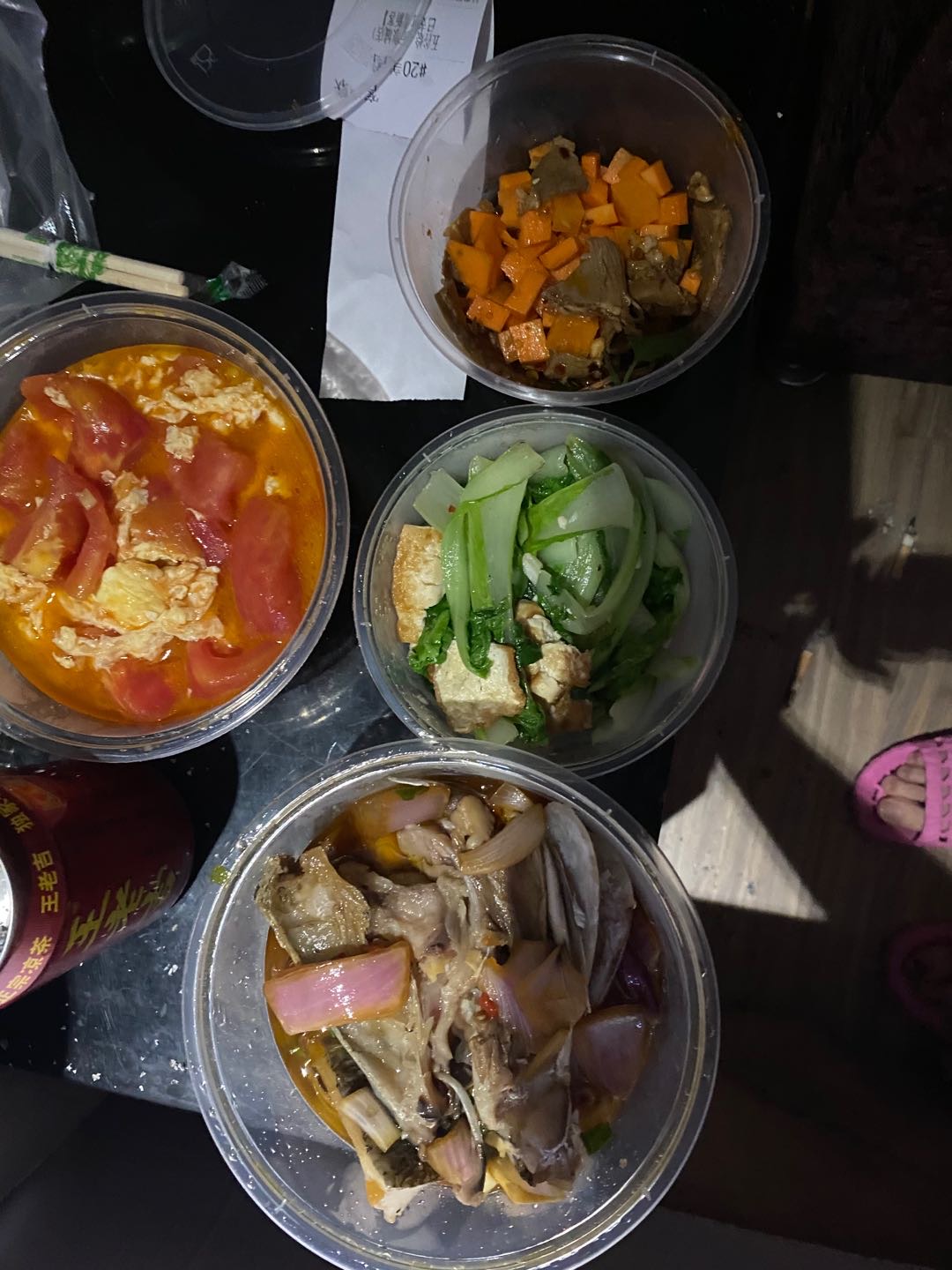 剁椒鱼头青菜豆腐西红柿炒鸡蛋