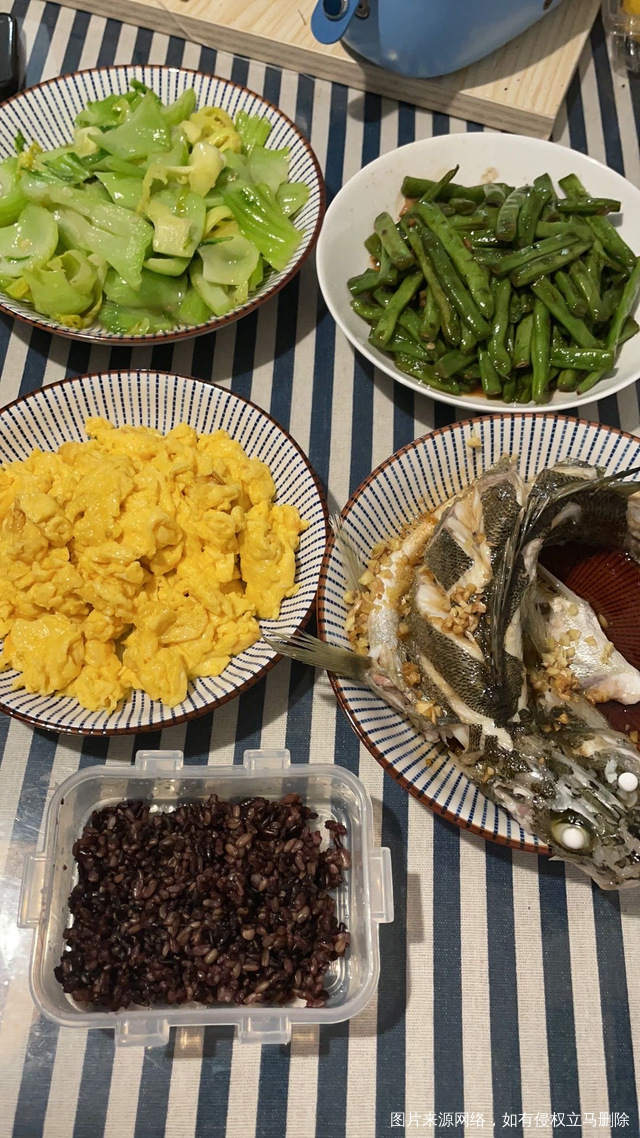 #第7天# 晚饭:回家晚了,老公煮的菜