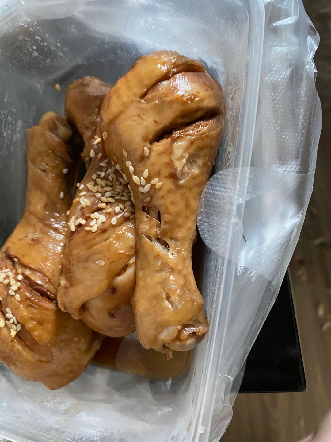 鸡腿2个没吃皮鹌鹑蛋2个脆骨5个苹果一个来曲