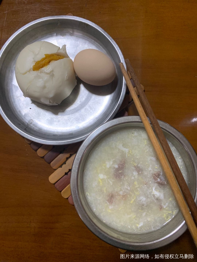 #第12天# 瘦肉粥,奶黄包,鸡蛋,吃完再看要不要冲奶粉