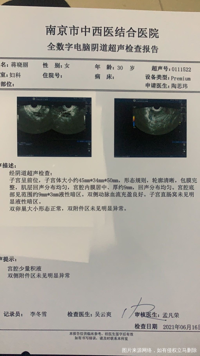停胎清宫后2个月复查的彩超,有没有子宫内膜粘连