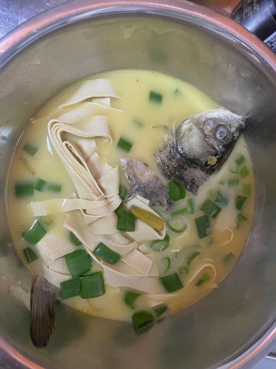 晚餐 鲫鱼汤。呼啦圈3200。 两天没出门,