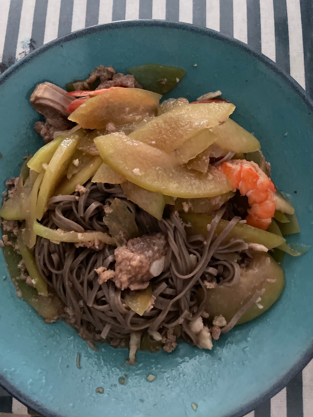 午餐:荞麦面+蒸排骨+肉沫炒冬瓜+虾仁
