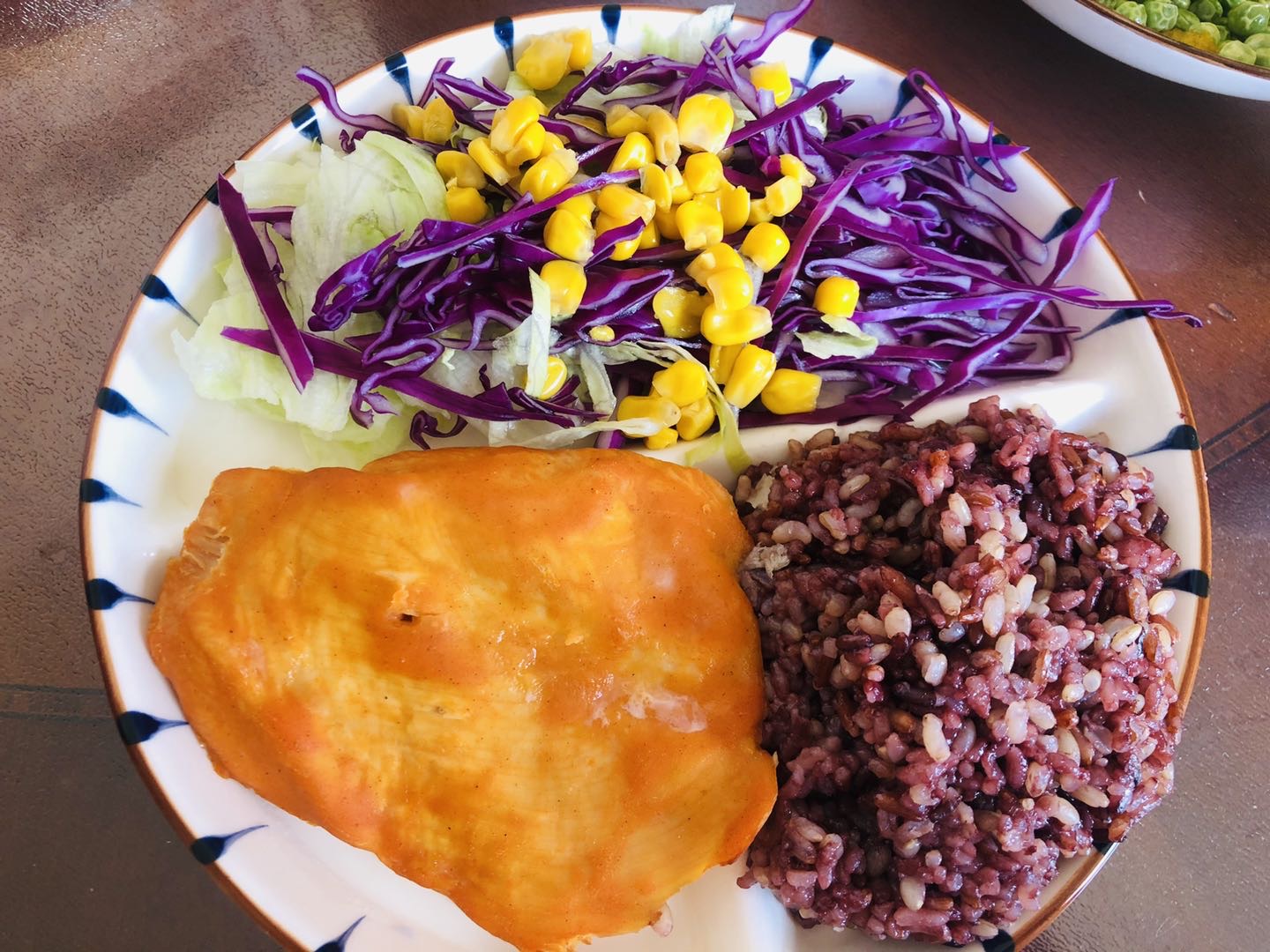 #第4天# 午餐蔬菜沙拉鸡胸肉还有糙米饭