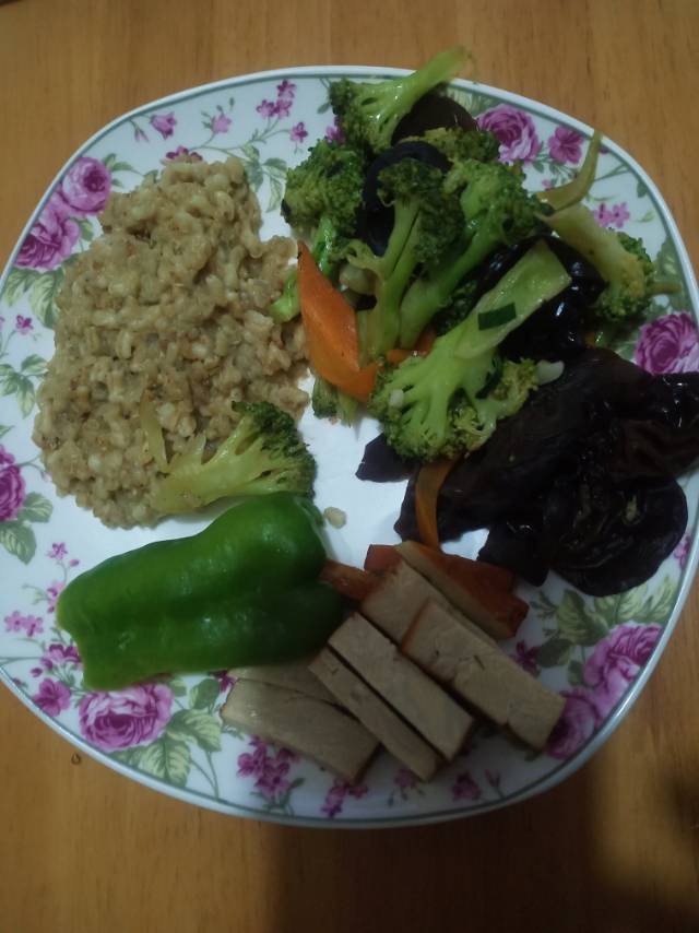 中午,益黎米饭,炒菜,鸡胸肉 晚上,益黎米饭