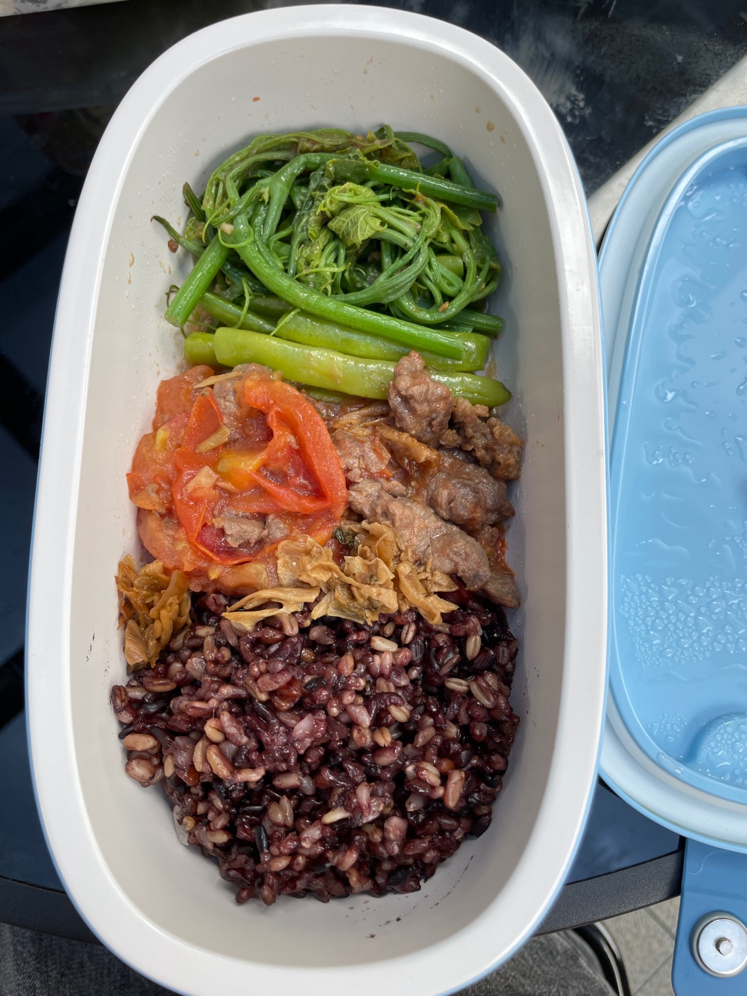 #第3天# 午餐:粗粮饭+番茄牛肉+炒四季豆