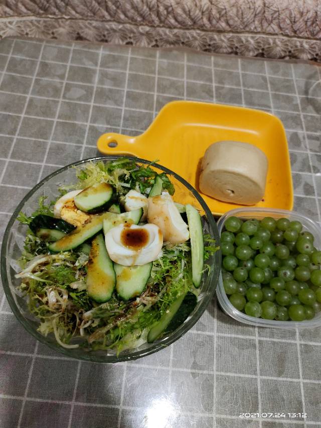 午,鸡蛋一个蛋白一个+苦菊拌黄瓜+全麦馒头。