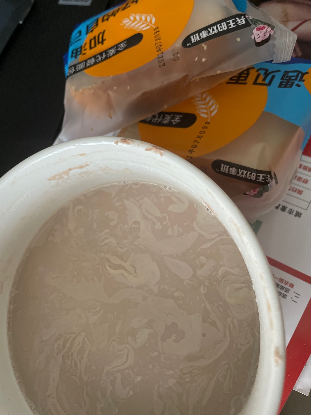 早餐,吃两片全麦吐司面包+一碗豆浆