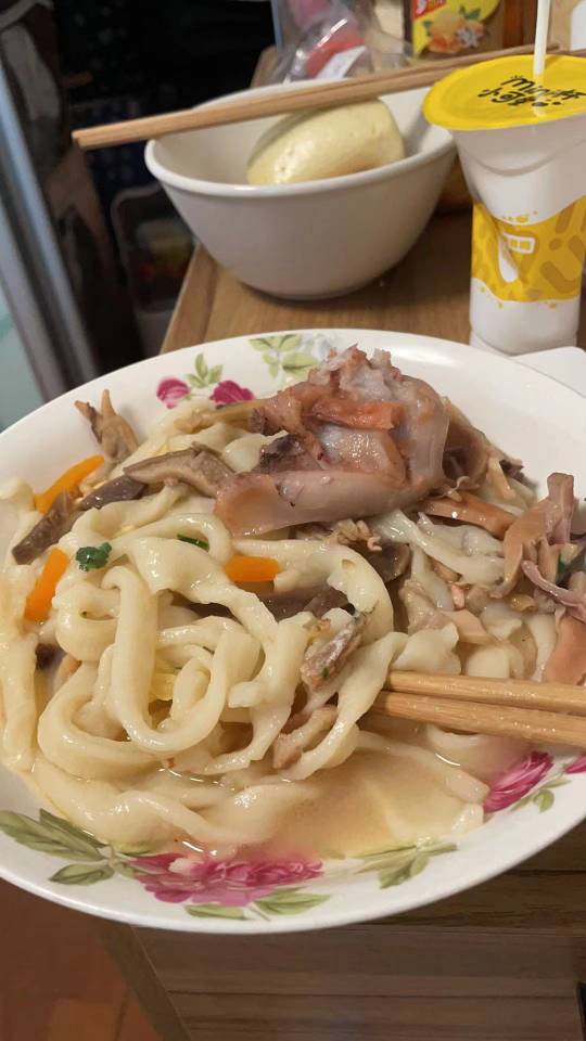#第2天# 午餐,粉条,鸡肉丝,油拌面,包子