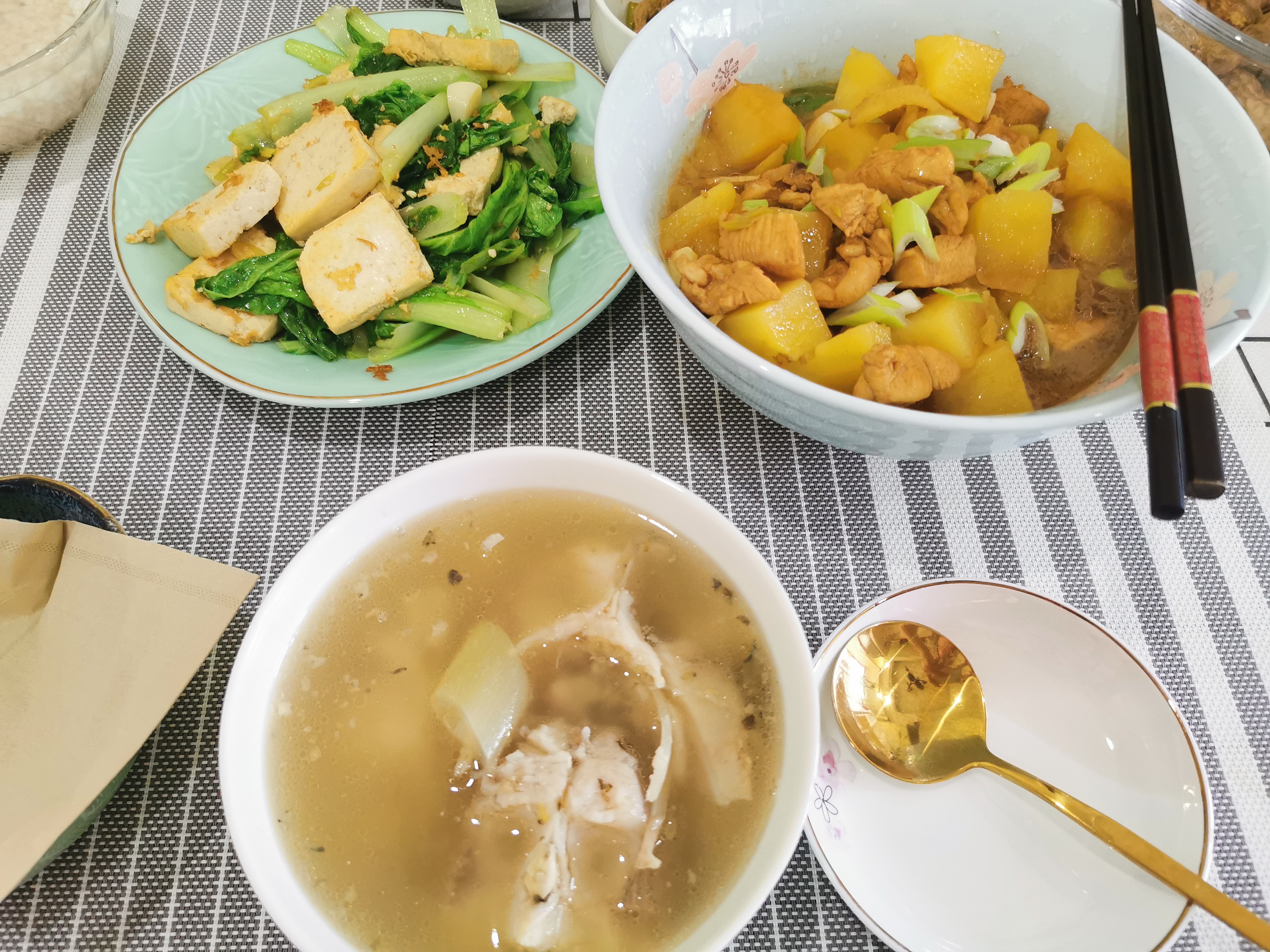 #第6天# 早上豆腐脑,中午鱼汤,晚上猪肚鸡!