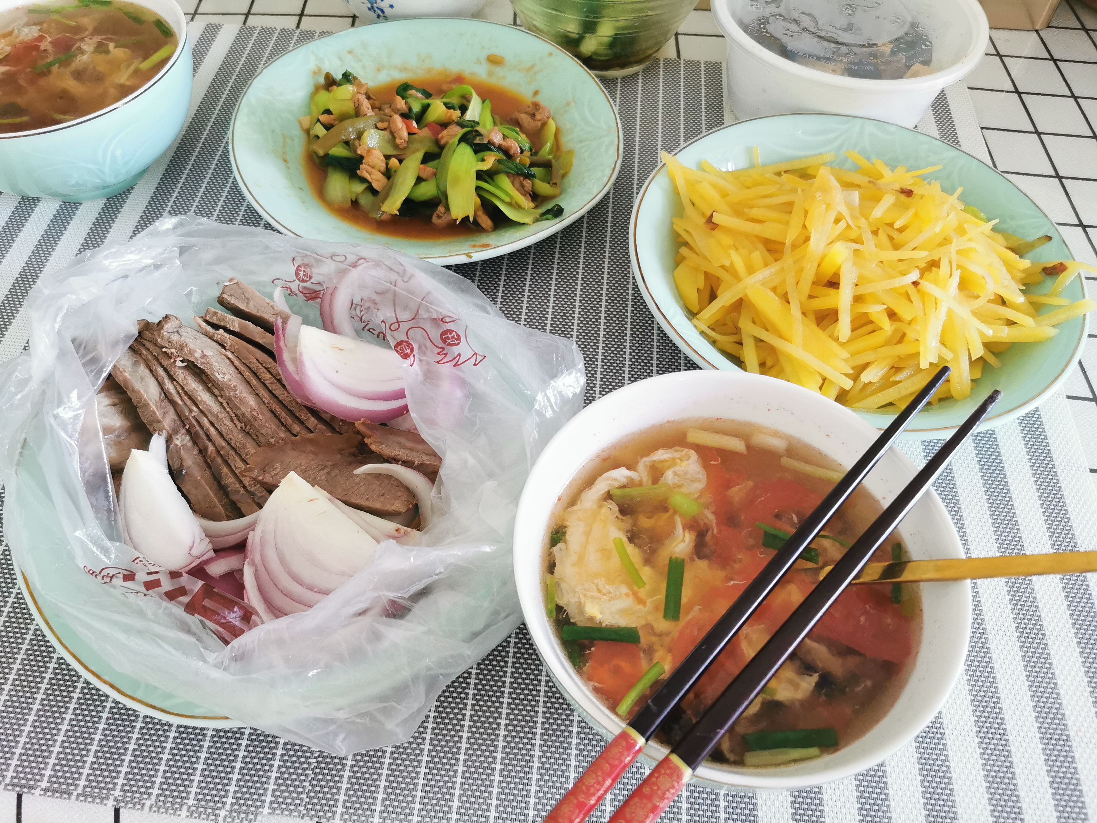 婆婆做饭,水果吃了桃和苹果;希望一切顺利